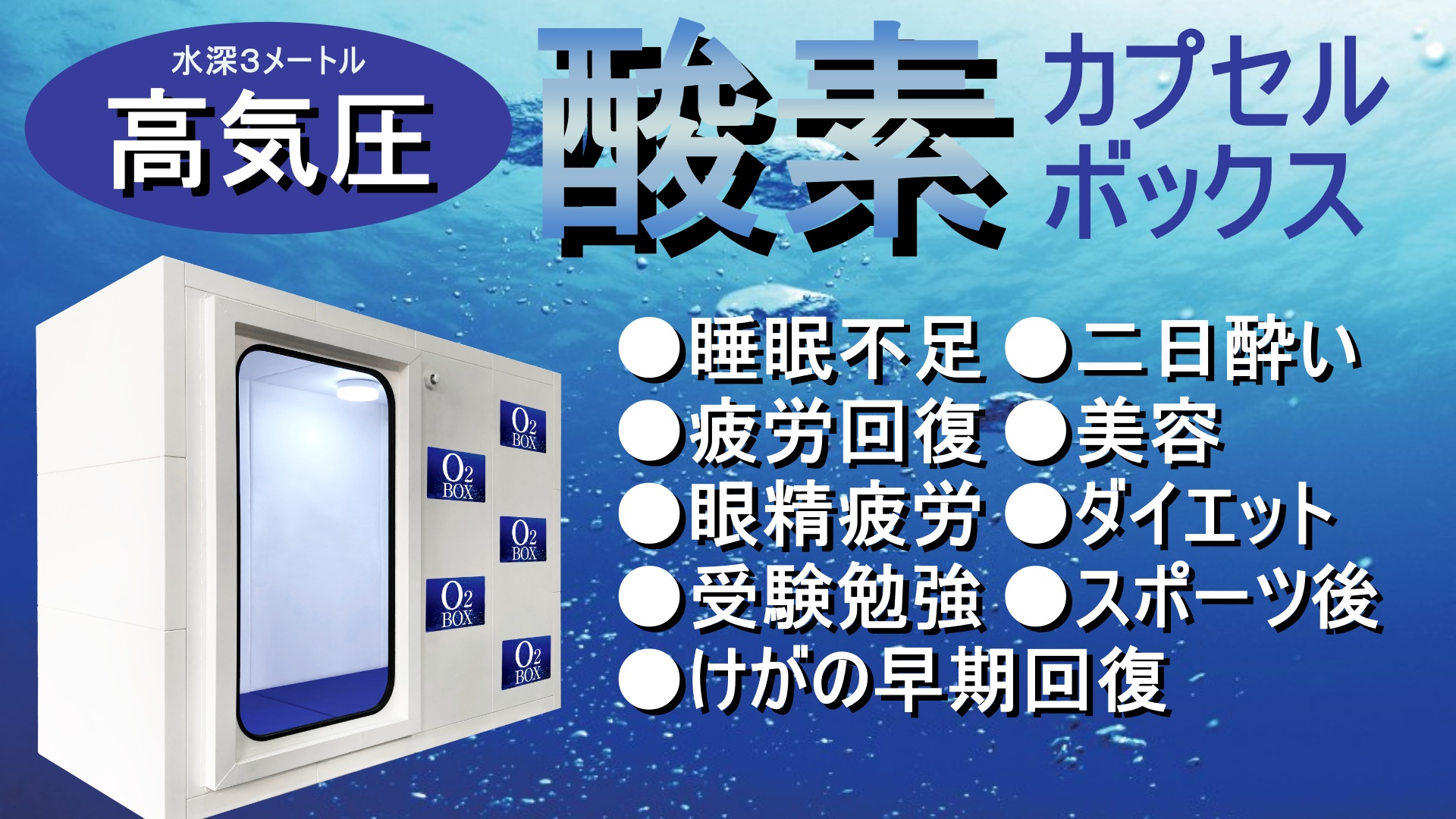 身体全体に酸素が行き渡らないので、疲れが取れにくくなったり、痩せづらくなったりと身体のコンディションを整えることが困難になっています。そこで酸素ボックス(酸素カプセル)「O2ボックス」の出番というわけです。